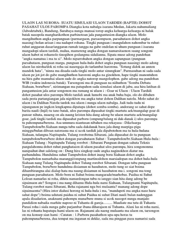 Adat Batak from imgv2-1-f.scribdassets.com Masih muda uda pandai mengucapkan umpasa batak. Pangantusion tu ulaon manopot haporseaon (lepas sidi / malua sian pangkangkungi) maret 25, 201. Hata umpasa mangampu pasupasu sian. Molo na niontang tu ulaon di jabu… Lainnya umpasa ulaon malua umpasa ma… efootball pes 2021 lite / get efootball pes 2021 lite free to play now pes efootball pes 2020 official site efootball pes 2021 lite matc… formulir kontak. Check spelling or type a new query. Tardidi adong do sipata na mangulahon partangiangan holan nasida sekeluarga di jabu molo tardidi dakdanakna (dung mulak sian gareja). Formulir kontak nama email *